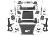 Lifts and levels the vehicle from front to rear High clearance crossmember design for optimal suspension geometry Includes cast knuckles for extreme durability Retains stock track width No strut disassembly required 100% precision laser cut materials using the latest computer aided design process. Fabricated blocks are stronger and offer a longer lifespan than cast blocks. Includes application valved N3 series shock absorbers which offer the best in balanced performance for on and off-road use. Chevy's 2019 1500 features an impressive all-new design that's built from the ground up, with aggressive angles and head-turning stylings that fit in beautifully when transformed with Rough Country's 6in Suspension Lift.This kit lifts and levels your vehicle for a commanding stance and enough clearance to run 35x12.50 tires on 10in wide wheels. Rough Country has engineered this kit to provide optimal suspension geometry while retaining the factory ride quality, giving you enhanced off-road capabilities without sacrificing the handling and smooth ride that makes this truck so impressive.Rough Country's 6in Suspension lift retains the stock track width, allowing for up to a 10in wide wheel with 4.5in backspacing. Each kit includes front and rear crossmembers and a skid plate for enhanced chassis strength as well as cast steel knuckles for incredible durability and performance. Includes Rough Country's Lifetime Replacement Guarantee!