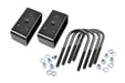 Blocks Fabricated steel blocks are stronger and offer a longer lifespan than cast blocks. Tapered to reduce drive shaft angle. Single 9/16-inch pin blocks. 2.5-inches wide. Powder coated black. U-bolts Thread Size: 5/8-inch Inside Width: 3.625-inch Inside Length: 16.5-inch Style: Round E-coated black Corrosion resistant Note: For off-road use ONLY. California Residents: Prop65 Warning. <p>Has the rear of your vehicle started to sag, or are you looking to add a bit of lift height? Whatever the case maybe we have you covered at Rough Country. Upgrade your rear suspension with Rough Country's vehicle-specific block and u-bolt kit!</p> <p>Rough Country's rear block and u-bolt kits provide a simple remedy to an age-old problem that simply happens over the span of your vehicle lift. Each kit offers two blocks that are tapered to reduce driveline angles, and are much stronger than the standard cast block option. These heavy-duty replacements feature a single pin measuring in a 9/16-inch to snuggle fit into your factory axle pad. Also included is a set of e-coated corrosion-resistant steel u-bolts. Our u-bolts offer four inches of thread ensuring that you have plenty of length to securely install this kit to the rear of your vehicle in no time flat. </p> <p>Best of all, Rough Country's vehicle-specific kits are backed by Rough Country's Satisfaction Guarantee! </p> <p> </p>