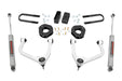 Lifts and levels the front of the vehicle with the rear. Front Lift: 3.5in | Rear Lift: 2.5in Increased ground clearance. Includes forged aluminum control arms. Control arms include POM ball joints for a greater range of motion and easier installation. Ball joints are pre-installed to ease installation. Fabricated lift blocks are stronger and offer a longer lifespan than cast blocks. Optional N3 Loaded Struts Includes pre-loaded coil. Maintains smooth, factory-like ride. Increased ground clearance. Engineered for lifted applications. Infinitely Variable Damping. Leak-proof piston seal. Massive 1 3/8in Bore. Silver powder coat finish. 3-year Manufacturer's Warranty. Optional M1 Monotube Struts 2-inch seamless extruded tube. 46mm digressive piston. Digressive valving. 46mm digressive piston. Fast heat dissipation. Fade-free performance Natural rubber bushings. Zinc plated aluminum body. 3-year Manufacturer's Warranty. Optional Vertex Coilovers 8-Stage Adjustable Damping. Monotube Design. Nitrogen-charged. Massive 2.5in Piston. 22mm Chrome-Hardened Piston Rod. 3-Stage Seal System. Heat-Treated, Alloy Bearing. Honed Steel Body. 3-year Manufacturer's Warranty. Note: Requires minor drilling and cutting. Lifted strut option fits 4WD models ONLY. Does NOT fit PRO-4X Models. Does NOT work with factory wheels. Must use 18in or larger aftermarket wheels with 5in backspacing. Must test fit wheels to ensure proper clearance from the tie rod end. <p><strong>Explore New Heights.</strong> With the rise of the new generation, Chevy decided that it was time to redesign one of their most beloved trucks and tap into some familiar technology by utilizing rear composite leaf springs. Chevy's fourth generation 1500 features an impressive all-new design that's built from the ground up, with aggressive angles and head-turning stylings that fit in beautifully when transformed with Rough Country's 3.5-inch Suspension Lift.</p> <p><strong>Innovative Design and Construction.</strong> When changing a vehicle's suspension, the key to preserving ride quality is keeping the geometry of all suspension components as close to their factory angles as possible. With Rough Country's six-inch lift kit specifically designed for the rear mono-leaf equipped models, you can rest easy knowing that everything is included for installation. Rough Country's 3.5in lift features a set of forged aluminum upper control arms to provide the correct suspension geometry in our most durable control arm to date! This perfect-height lift is a great choice for anyone who wants more than a simple level but doesn't quite want the full height of a 3.5-inch option. This kit lifts and levels the front of the vehicle with the rear, offering enough increased ground clearance to run up to 295/55R20 tires with an improved, aggressive look. We didn't want to limit you to one standard kit. Rough Country's 3.5-inch kit is configurable with all the shock options that we offer. This allows you to choose which shock series you want! Ranging from our nitrogen-charged N3 shocks to our Vertex reservoir shocks the power to choose is in your hands.</p> <p><strong>Installation.</strong> Requiring the use of a strut compressor to install, an estimated timeframe of 5-6 hours is recommended to complete this full installation. This full kit can be installed at home and can be completed efficiently and quickly!</p> <p><strong>Limited Lifetime Replacement Warranty.</strong> Rough Country's 3.5" Suspension Lift Kit is backed with a limited lifetime replacement warranty towards manufacturer defects. As such, the product is protected from structural and workmanship damage after the date of purchase. With our industry-leading warranty give yourself peace of mind when using Rough Country's Suspension products!</p>
