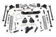 Easy bolt-on installation Increased ground clearance Levels the front with the rear of the vehicle Radius arm drop brackets allow for properly set caster. Proper caster is crucial to maintaining factory handling and driveability. Includes application valved N3 series shock absorbers which offer the best in balanced performance for on and off-road use. Fabricated blocks are stronger and offer a longer lifespan than cast blocks. Specially designed anti-axle wrap rear blocks maintain stock ride quality while eliminating common lift block problem. Note: Designed for models stock through six inches of lift. ONLY for lifted applications using Rough Country's Suspension products. Does NOT increase towing capacity. Minor drilling required. Gain greater travel and improved handling while adding ground clearance and aggressive style with Rough Country's 4-Link F-250 Lift Kit.This innovative kit allows you to replace your factory arms with a 4-Link setup, using Rough Country's durable, fixed upper arms and adjustable lower control arms. A set of radius arm drop brackets maintain proper geometry and allow for proper caster setting, which is crucial to maintain factory handling.This kit includes a set of lifted coil springs, radius arm drop-brackets, and ultra-durable, fabricated Anti-wrap rear blocks that prevent binding and axle wrap. This kit also includes stainless steel extended brake lines and brake line brackets to ensure you have everything you need to install your lift. Best of all, this kit features Rough Country's V2 Monotube Shock Absorbers for the ultimate balance in off-road performance and a smooth highway ride. Includes Rough Country's Lifetime Replacement Warranty