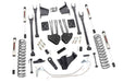 Easy bolt-on installation Increased ground clearance Levels the front with the rear of the vehicle Radius arm drop brackets allow for properly set caster. Proper caster is crucial to maintaining factory handling and driveability. Includes application valved V2 series shock absorbers which offer the best in balanced performance for on and off-road use. Fabricated blocks are stronger and offer a longer lifespan than cast blocks. Specially designed anti-axle wrap rear blocks maintain stock ride quality while eliminating common lift block problem. Note: Designed to accommodate shackles with 7/8in size threaded pins Only works with aftermarket bumpers that are designed to retain factory tow hooks Compliment your 08-10 Ford F-250/350's aggressive, good looks with Rough Country's 4-Link Suspension Lift System. Rough Country's 8-inch Lift Kit was engineered to retain the F-250/350's impressive factory specs while bumping up performance and durability where it's needed most. The result is an aggressive, lifted beast with a mean profile and balanced on and off-road ride quality. When changing a vehicle's suspension, the key to preserving ride quality is in keeping the geometry of all suspension components as close to their factory angles as possible. Rough Country's 4-Link Suspension Lift System features a set of ultra-durable radius arm drop brackets, precision fit to bolt right into the factory mounts for an easier install and a more factory-like angle. This all-inclusive kit also features an adjustable lower control arms at the axle to allow caster adjustment as well as a track bar relocation bracket and a drop pitman arm. A full set of N3 Shocks provide a truly balanced ride quality for on and off-road use - prefect for daily drivers. This kit also ships with a set of durable, lifted coil springs and brake line relocation brackets. This innovative kit design features a 100% bolt-on installation process that is lightning fast compared to other kits this size. Save time and money with no need for cutting, drilling, or other complicated procedures. Rough Country's Rough Country's 4-Link Suspension Lift System is backed by our Lifetime Replacement Warranty.