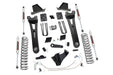 100% bolt-on installation Increased ground clearance Levels the front with the rear of the vehicle Includes heavy-duty radius arms equipped with durable durable rubber Bushings for maximum vibration absorption. New radius arms help maintain factory angles. Includes adjustable alignment cam at the axle to allow caster adjustment Includes application valved M1 series shock absorbers which offer the best in balanced performance for on and off-road use. Fabricated blocks are stronger and offer a longer lifespan than cast blocks. Specially designed anti-axle wrap rear blocks maintain stock ride quality while eliminating common lift block problem. Note: Requires 7 Degree Ball Joint Reamer Will not work with factory wheels ONLY works with Rough Country Steering Stabilizers Compliment your 11-14 Ford F-250's aggressive, good looks with Rough Country's 6-inch Radius Arm Lift Kit. Rough Country's 6-inch Lift Kit was engineered to retain the F-250's impressive factory specs while bumping up performance and durability where it's needed most. The result is an aggressive, lifted beast with a mean profile and balanced on and off-road ride quality.When changing a vehicle's suspension, the key to preserving ride quality is in keeping the geometry of all suspension components as close to their factory angles as possible. Rough Country's new 6-inch Radius Arm Suspension Lift features a set of ultra-durable Radius Arms, precision fit to bolt right into the factory mounts for an easier install and a more factory-like angle. At 27lbs each, these beefy, upgraded Radius Arms dwarf stock equipment while and feature durable durable rubber bushings for maximum vibration absorption.This all-inclusive kit also features an adjustable alignment cam at the axle to allow caster adjustment as well as a track bar relocation bracket and a drop pitman arm. A full set of N2.0 Shocks provide a truly balanced ride quality for on and off-road use - perfect for daily drivers. This kit also ships with a set of durable, lifted coil springs and brake line relocation brackets.This innovative kit design features a 100% bolt-on installation process that is lightning fast compared to other kits this size. Save time and money with no need for cutting, drilling, or other complicated procedures. Rough Country's 6-inch Radius Arm Lift Kit is backed by our Lifetime Replacement Warranty.
