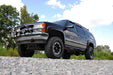 Redesigned for easier installation Track width remains stock Increased ground clearance Fabricated blocks are stronger and offer a longer lifespan than cast blocks. Torsion bar drop brackets and front skid plate feature RC laser cut logos. Includes application valved M1 series shock absorbers which offer the best in balanced performance for on and off-road use. Note: Please test fit one wheel before mounting tires. New lug nuts are recommended and sold separately. Sold Individually. Get a huge boost for your '88 - '98 Chevy / GMC 1500, Tahoe, and Suburban with Rough Country's all-inclusive 4-inch Suspension Lift. This kit features a set of beefy front and rear crossmembers and differential drop brackets, this kit can take what you dish out and keep on kicking. A set of drop-torsion bar brackets and a durable front skid plate both feature laser-cut RC logos that peak out from under the frame, giving your vehicle an unmistakable look. Rough Country's 6" Suspension Kit features (4) M1 monotubed shocks, giving your truck incredible ride-quality both on and off-road. This kit ships with a massive steering link and heim joint assist link. Rear lift blocks and add-a-leafs give plenty of clearance - enough to accommodate up to 33-inch tires. Our new and improved design allows your vehicle to retain its stock track width, and installation is now even easier. This all-inclusive kit comes with everything you need, and best of all this kit features Rough Country's Lifetime Replacement Warranty.
