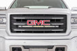 Factory appearance Brackets mount hidden away from view 12000 lumens 150 watts Contains 30, 5 watt Cree LEDs Durable die cast aluminum housing 30 degree spot beam Chrome panel design IP67 Waterproof rating Includes wiring harness Includes Noise Silencers to help eliminate hum, whistle, and other wind noises associated with mounted LED Light bars Light features a 3 year warranty Mounting brackets feature Lifetime warranty Bring the illuminating power of Rough Country's 30-inch Single-Row Curved LED to your 14-18 GM 1500 Pickup with Rough Country's discreet 30-inch LED Hidden Grille Kit. This unique mounting system installs behind the grille, perfectly holding your 30-inch Curved Single-Row LED Light Bar in the proper location for both ample lighting and airflow. This LED Hidden Grille Kit blends in so well it looks like factory equipment, peeking out only at just the right angle. Turn them on, and light floods outward, giving you unparalleled access to off-road lighting in a clean, flush kit.<br/><br/>Rough Country's LED Light Bars include a durable die-cast aluminum, IP67 waterproof housing for unsurpassed protection against the elements. Each LED also features a premium flat-wound, braided, IP68 waterproof wiring harness with a toggle switch and in-line fuse. Includes Rough Country's 3-year LED Warranty and Lifetime Mount Warranty.