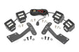 100% bolt-on installation Does NOT interfere with washer nozzle or spray pattern 5760 lumens 72 watts Each light contains 6, 3 watt high intensity Cree LEDs IP67 Waterproof rating Durable die cast aluminum housing Moisture Breather technology reduces moisture build-up behind the lends Includes premium, flat-wound wiring harness with on/off switch 3 year warranty Note: Eco-Diesel models will have to relocate the Eco-Diesel badge for installation. Does NOT work with Rough Country Bed Access Nerf Steps. Whether it's off-road riding at night or navigating the trails after hours, Rough Country's Quad Cube LED Ditch Mounts gives you the strong side illumination you need. Never miss another turn, and safely maneuver through any off-road situation in the dark without obstructing visibility from inside the cab. This easy to install mounting system is low profile and features 100% bolt-on installation procedure, with no need for cutting or drilling needed. The LED Cubes tuck nicely along the base of the windshield and pack an impressive 5,760 lumens and 72�watts of lighting power. Each Rough Country LED light cube is IP67 Waterproof and includes a premium, braided wiring harness with in-line fuse and on/off switch. This kit Includes Rough Country's 3-year LED warranty.