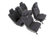 Note: Does NOT fit GMC models. Protect your seats from water, mud, and anything you can throw at it with Rough Country's front and rear Neoprene Seat Covers. These easy-to install covers fit snugly over your truck's seats to protect your interior from the elements while blending in perfectly.These comfortable seat covers feature a 4-layer construction with a thick foam padding for a comfortable feel and durable quality. The outer Neoprene protective layer wards off water and mildew while being soft to the touch and offering great breathability. Each cover is designed to be an exact fit on your vehicle, with accessibility for airbags, seat adjustment, and more! No tools required for this fast and simple upgrade, just slip each cover firmly over the seat and fasten with the built-in straps and you're ready to roll!Pick up a set of front seat covers to save your most-used seats from additional wear, or a rear set to protect your back seat from stains caused by kids or animals. Or choose front and rear for full seat protection!