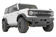 11 Gauge steel skin. 7 Gauge steel mounting points. Center opening to work with Adaptive cruise control units. Parking sensor ready using sensor mounting kit. Non-sensor vehicles use mounting kit with block-off panel. Bumper designed to overlap factory grill shell for looks and light bar fitment. 20" single row light bar block off grill. 20" single row light bar ready. Fits both DRL and Non-DRL 20" light bars. Flat black powder coat. Works with factory skid plates and factory frame-mounted tow rings. Note: ONLY fits models with 5' bed.California Residents: Prop65 Warning. #html-body [data-pb-style=XI4D869]{justify-content:flex-start;display:flex;flex-direction:column;background-position:left top;background-size:cover;background-repeat:no-repeat;background-attachment:scroll}<p><strong>Add an Aggressive Style.</strong> Looking to add some attitude to your Bronco? Check out our Rough Country Front Bumper. This bumper will transform the appearance of your vehicle and protect your lights and engine from potential damage. Manufactured to be a perfect fit for your Bronco and provide maximum ground clearance, our bumper is designed to overlap the factory grille shell for looks and light bar fitment. Since it fits Rough Country's 20" light bars, with an option to add additional cube lighting on the side, you can upgrade your visibility at night and give your vehicle a touch of style.</p> <p><strong>Modular Design.</strong> Rough Country's High Clearance Bumper Kit is modular, letting you pick and choose the options you prefer. Spanning the line of our high-quality black series LED light bars and LED cube lights, YOU can decide the combination that best suits your needs! Boasting an impressive 14,400 lumens of combined lighting power you're sure to see the trails on your next outing. Each bumper features high clearance full wings that provide additional protection when tackling the trails!</p> <p><strong>Installation.</strong> Requiring minor splicing, an estimated timeframe of 3-4 hours is suggested to complete the installation process. With the included step-by-step instructions this high-quality unit can be assembled and installed at home!</p> <p><strong>Limited Lifetime Replacement Warranty.</strong> Rough Country's High Clearance Bumper Kit is backed with a limited lifetime replacement warranty towards manufacturer defects. As such, the product is protected from structural and workmanship damage after the date of purchase. With our industry-leading warranty give yourself peace of mind when using Rough Country's Suspension products!</p>