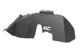 Keeps mud and debris out of engine bay. Easy installation. Includes optional configuration for reservoir shocks. Uses OE hole locations. Paintable logo plate. Corrosion-resistant black powder coat. Improves the look of inner-fender area. Includes front driver and passenger side pieces. Note: Stubby wings designed to work in conjunction with fender delete kit 51061. Works in unison with Rough Country's hidden winch mounts Shop here. Works in unison with Rough Country's tow hook brackets Shop here. <p><strong>Superior Solution.</strong> Clean up the look of your inner fenders with Rough Country's JT Front Inner Fender Liners. This eye-catching inner fender upgrade helps protect your engine bay from dust, mud, and debris, and can be easily installed in no-time flat!</p> <p><strong>Durable Upgrade.</strong> Aftermarket fenders are a huge improvement for most Jeeps wanting to get the best clearance and articulation possible, but when removing the stock fenders many people also remove the stock fender liners. Regain protection in this crucial area and protect your engine bay from the elements with Rough Country's innovative Front Inner Fender Liners. With a unique 3-piece construction, these liners cover more areas than other liners on the market, giving more protection to your engine bay and body panels. Each Rough Country liner features a corrosion-resistant powder coat for long-lasting durability. Additionally, these liners mount firmly to the body for quiet operation, free of rattling or vibration noise. The solid-steel, angular design with "RC†logo cutout gives an aggressive look to this now more visible area on your JT. An included, removable logo plate can be custom painted to any color you wish for a pop of extra color.</p> <p><strong>Installation and Warranty.</strong> Rough Country Inner Fender Liners feature a bolt-on installation process with minor drilling for an easy upgrade you can do with common tools in a home garage. Rough Country's Inner Fender Liners come with our Limited Lifetime Warranty, so you can enjoy the peace of mind that comes with buying Rough Country products.</p>