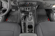Quick and easy installation. Meticulously engineered to fit each vehicle exactly right. All weather protection against Snow, Mud, Sand, Salt Water and More! Resist extreme temperatures. Protect against soda, coffee spills or accidents. Spill Saver Lip. (Prevents spills from reaching the carpet.) Textured surface keeps feet from slipping. Eco-friendly, low density polyethylene provides full flexibility to ensure a lasting shape. Easy to Clean and Maintain. (Detachable from Vehicle) Limited Lifetime Warranty. Note: 4-door models ONLY Requires minor drilling Keep your carpet in pristine condition with Rough Country's Floor Armor: Heavy Duty Floor Mats and Rear Cargo Liners. These eco-friendly, semi-flexible floor mats are made of an ultra-durable Polyethylene that offers a strong, rigid shape that's incredibly easy to clean. Where simple rubber floor mats fail, Rough Country's line of Floor Armor is guaranteed for life and will never crack, split, or break-down over time. The high-quality design extends the lifespan of your carpets and the raised-lip design ensures your interior will always be protected from mud, moisture, and more. These contoured floor mats are laser-measured for each make and model; designed to be a precise fit that grips the carpet and stays put. An aggressive looking textured surface gives your muddy shoes plenty of traction and looks great inside the vehicle. No matter what you track in, Rough Country Floor Armor is incredibly easy to clean. Just pop them out of the floorboards and rinse away the dirt! Includes Rough Country's Lifetime Replacement Warranty.