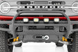 Durable powder coated steel. Easy installation. No Cutting or Drilling Required. Retains factory tow hooks. 2-inch diameter steel tubing. Corrosion-resistant black powder coat. Features Laser-cut "RC" logo. Mounting bar features 5-year limited warranty. LED Lights feature a 3-year limited warranty. Optional 20†Light Bar 7200 lumens 100 watts Durable die-cast aluminum housing Contains 20, 5 watt Cree LEDs 3 year warranty Optional 4†Round Lights 4320 lumens 54 watts 30 degree spot beam Contains 9, 3 watt Cree LEDs 3 year warranty Optional Wide Angle Osram LED 13,500 lumens 150 watts 140 degree wide-angle beam Contains 30, 5-watt OSRAM LEDs 3 year warranty Note: ONLY fits models with 6in of suspension lift. <p><strong>Innotative Design.</strong> Outfit your Ford Bronco right with Rough Country's Nudge Bar. This durable 2-inch thick tubular steel bull bar provides unbeatable protection for the front side of your vehicle all while offering multiple LED mounting solutions to provide ample lighting for the trail ahead.</p> <p><strong>Durable Upgrade.</strong> Each Nudge Bar is coated with a corrosion-resistant black powder coat to ensure a long lifespan for years to come. Rough Country's Nudge Bar can be equipped with four round LED lights, or a single row 20" LED light bar! Rough Country's all-weather LED lights feature a durable, die-cast aluminum housing and include a premium, waterproof, flat-wound, braided wiring harness with a toggle switch and in-line fuse.</p> <p><strong>Installation and Warranty.</strong> Featuring a 100% bolt-on installation process an estimated timeframe of 3-4 hours is predicted to complete the installation process. This full kit can be installed and can be completed efficiently and quickly! Rough Country's Nudge Bar is backed with a limited lifetime replacement warranty towards manufacturer defects. As such, the product is protected from structural and workmanship damage after the date of purchase. With our industry-leading warranty give yourself peace of mind when using Rough Country's Suspension products!</p>