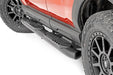 Durable, steel side steps. Classic, OEM design. Wide 4.5-inch stepping area. No-drill installation. 30-degree angled end design. Easy installation. Looks great on lifted vehicles. 5-year limited warranty. Note: IMPORTANT! - Installation of larger tires will require a Hypertech Speedometer Calibrator (#732501) Does not fit Hybrid eAssist models Does NOT fit models with stock Cast Steel Control Arms Does NOT fit GMC Denali models with Magnetic Ride Control. Requires cutting and drilling. If wider than 35x12.50 R20 tires are used, offset wheels will be required and trimming may be required. 18-inch or larger wheels are required. Please view installation instructions for complete information on proper tire/wheel combinations. If truck is equipped with a mass damper on the front differential, the damper must be removed. Gain easier access to your cab with the classic, OEM look of Rough Country's Oval Nerf Step Bars. These durable, steel side steps feature a comfortable, 4.5-inch wide stepping area built into a large, tubular nerf rail that mimics the look of the popular OEM oval step design. Each nerf board features a long-lasting black powder coat and durable steel construction that can support up to 500lbs! Each step offers a 30-degree angled end design looks great on any vehicle. A secure, 4.5-inch wide stepping area features a non-slip pad to ensure a confident footing each and every time.