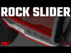 100% bolt-on installation Color: Flat Black Powdercoat Length: 64 inches Cab length rock slider. Top of slider can be used as a step. Solid 1-piece, 1/8" thick all-steel construction. Added protection from road debris. Helps hide exposed frame under vehicle. Works with or without a body lift. 3-year limited warranty. Note: ONLY fits models with 3in - 6in of suspension lift. <p><strong>Ultimate Protection.</strong> Introducing JK Unlimited Rock Sliders – the perfect way to protect your Jeep against hard rocky surfaces and road debris. These bad boys are tough enough to take on anything you might encounter on or off the trail. Plus, they have an aggressive off-road design to keep your truck looking good no matter what. So if you're looking for extreme protection and killer style, JK Unlimited Rock Sliders are a perfect choice.</p><p><strong>Made to Last.</strong>  JK Unlimited Rocker Sliders are designed to offer rock-solid, 1-piece protection for your Jeep. These heavy-duty sliders are constructed entirely from steel for unbeatable strength and durability. The top of the slider doubles as a step, making it easy to get into your Jeep. Our rock sliders come in a flat black powder-coated finish and are designed to help hide your exposed frame. Whether you're an off-road novice or a seasoned pro, they are a great way to keep your Jeep looking good for years to come.</p><p><strong>Installation.</strong>  Rough Country's bolt-on Rock Sliders are easy to install, 100% bolt-on, and require no drilling. Plus, they come with all the necessary hardware included. With an estimated install time of 3-4 hours, you can enjoy your new sliders in no time.</p><p><strong>Limited Lifetime Warranty.</strong> Rough Country's JK Unlimited 4-Door Rock Sliders are backed with a limited lifetime replacement warranty towards manufacturer defects. As such, the product is protected from structural and workmanship damage after the date of purchase. With our industry-leading warranty, give yourself peace of mind when using Rough Country's products!</p>