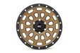 Bronze w/Black Ring. Simulated Beadlock. Single-piece aluminum construction delivers a super strong, super light wheel. Includes a Rough Country black center cap. Backed by a 1-year finish and Limited Lifetime Structural Warranty. Note: ONLY fits models with 52" rear leaf springs. If vehicle is equipped with a front sway-bar, drop brackets are recommended. (SKU: 1019) If vehicle is equipped with factory front quad shocks (4 total front shocks), please add Factory Quad Shock kit below (SKU: Q20027). <p><strong>Stand-out Look.</strong> Rough Country 87 Series Bronze Wheels are built for maximum durability and strength with high-performance styling that ensures that it's ready to withstand anything on the street. Opting to upgrade your stock wheels will provide you with a rugged appearance and outstanding performance that you expect from Rough Country products. The 87 Series bronze Wheel is a must for anybody who wants to add a bold new look to make your ride stand out from the crowd.</p> <p><strong>Superior Design.</strong> Our Series 87 bronze Wheels feature a high-quality bronze finish with matte black simulated bead lock and one-piece aluminum construction that delivers a strong, durable wheel. These copper color wheels boast an aggressive design and include a Rough Country black center cap, so you can tackle the road in style. Rough Country's Copper Wheels come with a 1-year finish and Limited Lifetime Structural Warranty.</p>