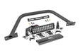 1 7/8" x .095" wall Tubing. Mounting flanges are made from 7 gauge material. Mounts to modular bumper with factory hardware. Slotted light bracket allows the use of multiple LED options. Works with the RC high mount winch kit. Can be installed as a stand-alone unit. Mounting bar features a 5-year limited warranty. LED Lights feature a 3-year limited warranty. Optional 20” Light Bar 7200 lumens 100 watts Durable die-cast aluminum housing Contains 20, 5 watt Cree LEDs 3 year warranty Optional 4” Round Lights 4320 lumens 54 watts 30 degree spot beam Contains 9, 3 watt Cree LEDs 3 year warranty Optional Wide Angle Osram LED 13,500 lumens 150 watts 140 degree wide-angle beam Contains 30, 5-watt OSRAM LEDs 3 year warranty Note: Requires cutting and drilling. Does not fit Hybrid eAssist models Does NOT fit models with stock Cast Aluminum or Stamped Steel control arms Does NOT fit GMC Denali models with Magnetic Ride Control. If wider than 33x12.50 tires are used, offset wheels will be required and trimming may be required. 18-inch or larger wheels are required. Please view installation instructions for complete information on proper tire/wheel combinations. If truck is equipped with a mass damper on the front differential, the damper must be removed. <p><strong>Rugged Style and Protection.</strong> Create a custom front-end look with the Rough Country Bronco Safari Bar. Rough Country's Bronco Safari Bar is just what you need. Offering protection from both on and off-road hazards, it's perfect for tackling any adventure. Plus, with multiple LED mounting solutions, you can be sure you'll have plenty of light - no matter where you go. And if you're looking to add a winch, the Safari Bar works perfectly with Rough Country's High Mount Winch Kit. This is the perfect accessory for off-roading enthusiasts who strive to go farther and higher every time they hit the trails.</p> <p><strong>Built to Withstand.</strong> The Rough Country Bronco Safari Bar is the perfect accessory if you're looking to get your Bronco ready for an adventure. This tough bar is made from high-quality steel with 1 7/8" x .095" wall tubing to ensure maximum strength. The mounting flanges are also made from 7-gauge material, so you know it's built to last. In addition, it comes in a corrosion-resistant black powder coat finish to withstand even the most challenging terrain. Rough Country's Bronco Safari Bar is a perfect choice if you're tackling rugged trails or just want to add a little extra style to your ride.</p> <p><strong>Installation and Warranty.</strong> This easy-to-install bar is perfect for anyone looking to take their Bronco to the next level. The Safari Bar mounts directly to your modular bumper using factory hardware and can be installed as a stand-alone unit. You also get peace of mind knowing that your purchase comes with a limited lifetime replacement warranty for manufacturer defects. With Rough Country's industry-leading warranty, you can be sure that your Rough Country lift kit is protected from structural and workmanship damage after purchase.</p>