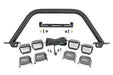 1 7/8" x .095" wall Tubing. Mounting flanges are made from 7 gauge material. Mounts to modular bumper with factory hardware. Slotted light bracket allows the use of multiple LED options. Works with the RC high mount winch kit. Can be installed as a stand-alone unit. Mounting bar features a 5-year limited warranty. LED Lights feature a 3-year limited warranty. Optional 20” Light Bar 7200 lumens 100 watts Durable die-cast aluminum housing Contains 20, 5 watt Cree LEDs 3 year warranty Optional 4” Round Lights 4320 lumens 54 watts 30 degree spot beam Contains 9, 3 watt Cree LEDs 3 year warranty Optional Wide Angle Osram LED 13,500 lumens 150 watts 140 degree wide-angle beam Contains 30, 5-watt OSRAM LEDs 3 year warranty Note: Requires cutting and drilling. Does not fit Hybrid eAssist models Does NOT fit models with stock Cast Aluminum or Stamped Steel control arms Does NOT fit GMC Denali models with Magnetic Ride Control. If wider than 33x12.50 tires are used, offset wheels will be required and trimming may be required. 18-inch or larger wheels are required. Please view installation instructions for complete information on proper tire/wheel combinations. If truck is equipped with a mass damper on the front differential, the damper must be removed. <p><strong>Rugged Style and Protection.</strong> Create a custom front-end look with the Rough Country Bronco Safari Bar. Rough Country's Bronco Safari Bar is just what you need. Offering protection from both on and off-road hazards, it's perfect for tackling any adventure. Plus, with multiple LED mounting solutions, you can be sure you'll have plenty of light - no matter where you go. And if you're looking to add a winch, the Safari Bar works perfectly with Rough Country's High Mount Winch Kit. This is the perfect accessory for off-roading enthusiasts who strive to go farther and higher every time they hit the trails.</p> <p><strong>Built to Withstand.</strong> The Rough Country Bronco Safari Bar is the perfect accessory if you're looking to get your Bronco ready for an adventure. This tough bar is made from high-quality steel with 1 7/8" x .095" wall tubing to ensure maximum strength. The mounting flanges are also made from 7-gauge material, so you know it's built to last. In addition, it comes in a corrosion-resistant black powder coat finish to withstand even the most challenging terrain. Rough Country's Bronco Safari Bar is a perfect choice if you're tackling rugged trails or just want to add a little extra style to your ride.</p> <p><strong>Installation and Warranty.</strong> This easy-to-install bar is perfect for anyone looking to take their Bronco to the next level. The Safari Bar mounts directly to your modular bumper using factory hardware and can be installed as a stand-alone unit. You also get peace of mind knowing that your purchase comes with a limited lifetime replacement warranty for manufacturer defects. With Rough Country's industry-leading warranty, you can be sure that your Rough Country lift kit is protected from structural and workmanship damage after purchase.</p>