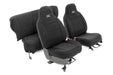 Easy installation Made to factory specifications 4-Layer construction w/ foam padding and protective polyester shell Neoprene layer offers great breathability and water resistant Includes full covers for front and rear seats - plus headrest covers where applicable One year warranty Note: Cannot be installed in conjunction with a strut spacer ONLY fits models with 4-inches of lift Rough Country N3 lifted struts are designed to replace strut spacers from pre-existing lifted vehicles only Protect your Jeep's seats from water, mud, and anything you can throw at it with Rough Country's front and rear Neoprene Seat Covers. These easy-to install covers fit snugly over your Jeep's seats to protect your interior from the elements while blending in perfectly.These comfortable seat covers feature a 4-layer construction with a thick foam padding for a comfortable feel and durable quality. The outer Neoprene protective layer wards off water and mildew while being soft to the touch and offering great breathability. Each cover is designed to be an exact fit on your vehicle, with accessibility for airbags, seat adjustment, and more!Each kit features a full front and rear set, with front seat covers, rear bench covers, and four full headrest covers (on applicable models) to outfit your entire seating space. No tools required for this fast and simple upgrade, just slip each cover firmly over the seat and fasten with the built-in straps and you're ready to roll!