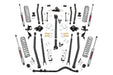 Achieve the ultimate flex and articulation while retaining a smooth highway ride quality with Rough Country's 4-inch Long Arm Suspension Lift Kit. This true 4-link setup offers incredible off-road performance while keeping the suspension geometry as close to the factory angles as possible. The result is a more capable suspension setup that can deliver jaw-dropping rock crawling performance while still giving the soft, lush highway ride quality a daily driver would enjoy. Rough Country's 4-inch Long Arm Suspension Kit boasts an easier install process than most long arm kits, with no welding and no removal of the factory crossmember required for installation. Each JL Long Arm Kit features custom engineered dual-rate coils that provide two distinctly different levels of compression allowing you to tackle any obstacle with ease. The 4-link setup includes a full set of front and rear upper and lower adjustable control arms giving you full control to adjust the wheelbase and pinion angle. Each arm features Rough Country's adjustable flex joints with Clevite rubber bushings and is constructed out of durable heavy-wall DOM tubing for a long lifespan of flex and performance. All brackets are made of a thick 1/4-inch thick high tensile strength plate steel. Includes a Lifetime Replacement Guarantee!