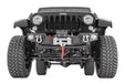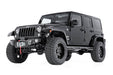 In a perfect world, JK owners would combine the durability and strength of a winch bumper with the affordability and low weight of a winch plate. Thanks to Rough Country, you can live in that world with the all-new JK Hybrid Stubby w/ Integrated Fog Light Mounts. Utilizing an innovative design scheme, Rough Country's Research and Development Team has produced a new type of winch bumper that borrows the best from both sides while remaining easy to install and easy on your wallet.The JK Hybrid Stubby features a thick plate steel center with an integrated winch mount. Two steel end caps with integrated fog light mounts help further protect the winch, partially encasing it - but the real success of this design lies in the fact that these end caps are removable, offering plenty of clearance to easily install or remove the winch. Mount your fairlead to the outside and the result is an easy-to-install winch protection system. Best of all, The JK Hybrid Stubby weighs in at a mere 40lbs! How's that for not bogging you down?This winch bumper is a true stubby. Utilizing the JK's factory bumper mounts and tow hooks, it spans no further than the frame horns and rests below the radiator shroud. Install this bumper and immediately gain greater tire clearance and better approach angles. And with it's sleek Carbon Black Powder coat and aggressive looks, The Hybrid Stubby is prepared to withstand the elements while generating a lot of head-turning on the trails. Be ready to answer a lot of curious cruisers' questions, especially when you tell them it retails for only $229.95!