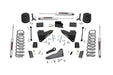 Increased ground clearance Maintains factory progressive rate coil springs Track bar bracket keeps the front axle properly centered. Fits both rear coil spring and rear air ride suspension models! Rear ride height arm brackets let you adjust the rear ride height, up to 1-inch higher than the front - Air Ride models ONLY Includes application valved N3 series shock absorbers which offer the best in balanced performance for on and off-road use. Compliment your RAM 2500's aggressive, good looks with Rough Country's 5-inch Lift Kit. New model RAM Trucks come with a wealth of impressive features right from the factory. Rough Country's 5-inch kit was engineered to retain these impressive factory specs while bumping up performance and durability where it's needed most. The result is a lifted beast with a mean profile and lush ride-quality that'll make other RAM owners wonder where you got yours from!Rough Country's 5-inch Lift Kit is designed for Dodge RAM's equipped with either factory rear coils or factory rear air ride suspension. On Air Ride models, this kit uses a rear air bag spacer that works with the factory air bag to provide rear lift. This kit also features a Rear Sensor Arm Relocation Bracket that can modify how the sensor link speaks to the computer to determine what the ride height is. This allows you to adjust the amount of rear height up to 1-inch higher than the front by way of multiple mounting points spaced by 1/4-inch. Pick the mounting point you want for the rear ride height you prefer.When changing a vehicle's suspension, the key to preserving ride quality is in keeping the geometry of all suspension components as close to their factory angles as possible. Rough Country's 5-inch Suspension kit features a set of Radius Arm Drop brackets allowing you to retain the beefy factory arms while keeping everything at optimum angles. This kit also features a set of front, lifted coil springs, anti-wrap rear blocks and N3 Shocks for a fantastic blend of smooth highway ride and awesome off-road performance.