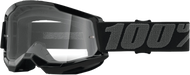 100% Strata 2 Motocross & Mountain Bike Goggles - MX and MTB Racing Protective Eyewear (Black - Clear Lens)