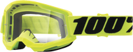 100% Strata 2 Motocross & Mountain Bike Goggles - MX and MTB Racing Protective Eyewear (Yellow - Clear Lens)